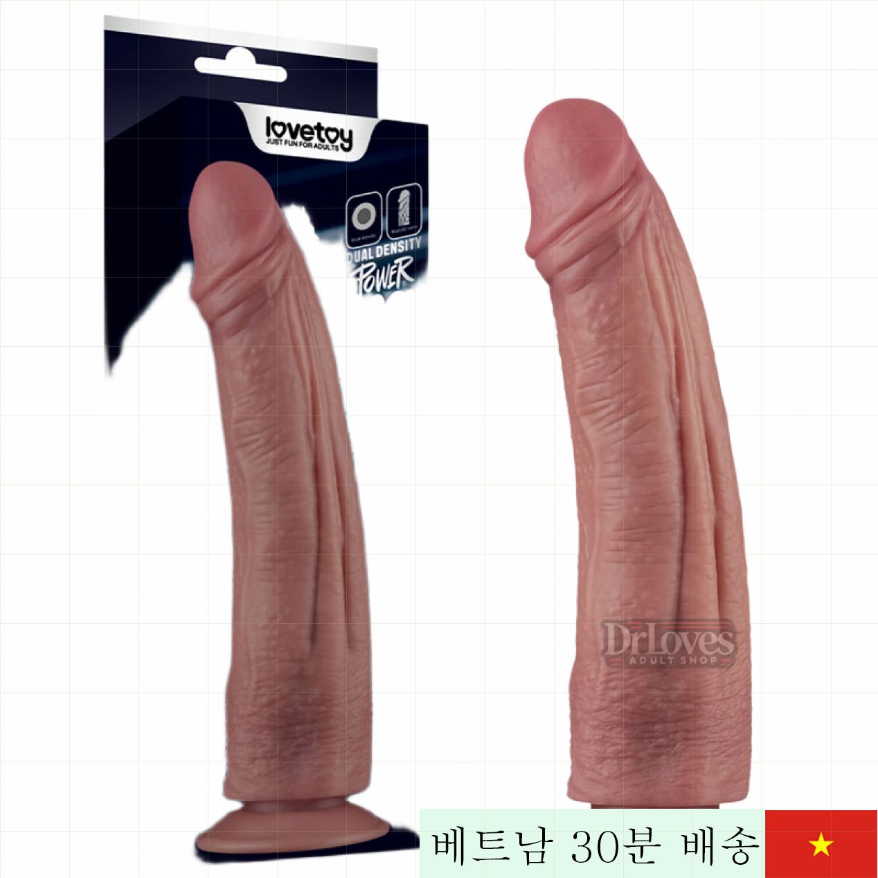 Lovetoy Power Cock 10.5 인치는 최신 기술과 섬세한 디자인으로 완성된 프리미엄 남성용 성인용품입니다. 실제와 거의 흡사한 촉감과 생생한 디테일이 특징이며, 26.8cm의 전체 길이와 6cm의 지름으로 깊고 풍부한 만족감을 선사합니다. 고품질 PVC 듀얼 밀도 소재로 만들어져 피부에 안전하며 민감한 분들도 안심하고 사용할 수 있습니다.