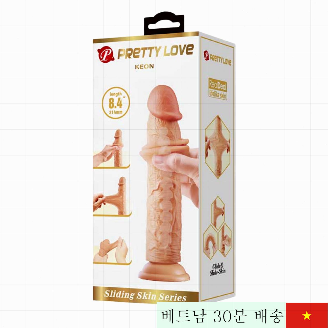 PrettyLove Keon은 부드러운 TPR 소재와 견고함이 적절히 조합되어 손에 쥐었을 때, 그리고 사용할 때 진짜 같은 촉감을 선사합니다. 특히 두 겹의 섬세한 실리콘이 환상적인 자연스러움을 완성하며, 21.4cm의 적당한 크기와 4.4cm의 직경으로 사용감을 극대화합니다.