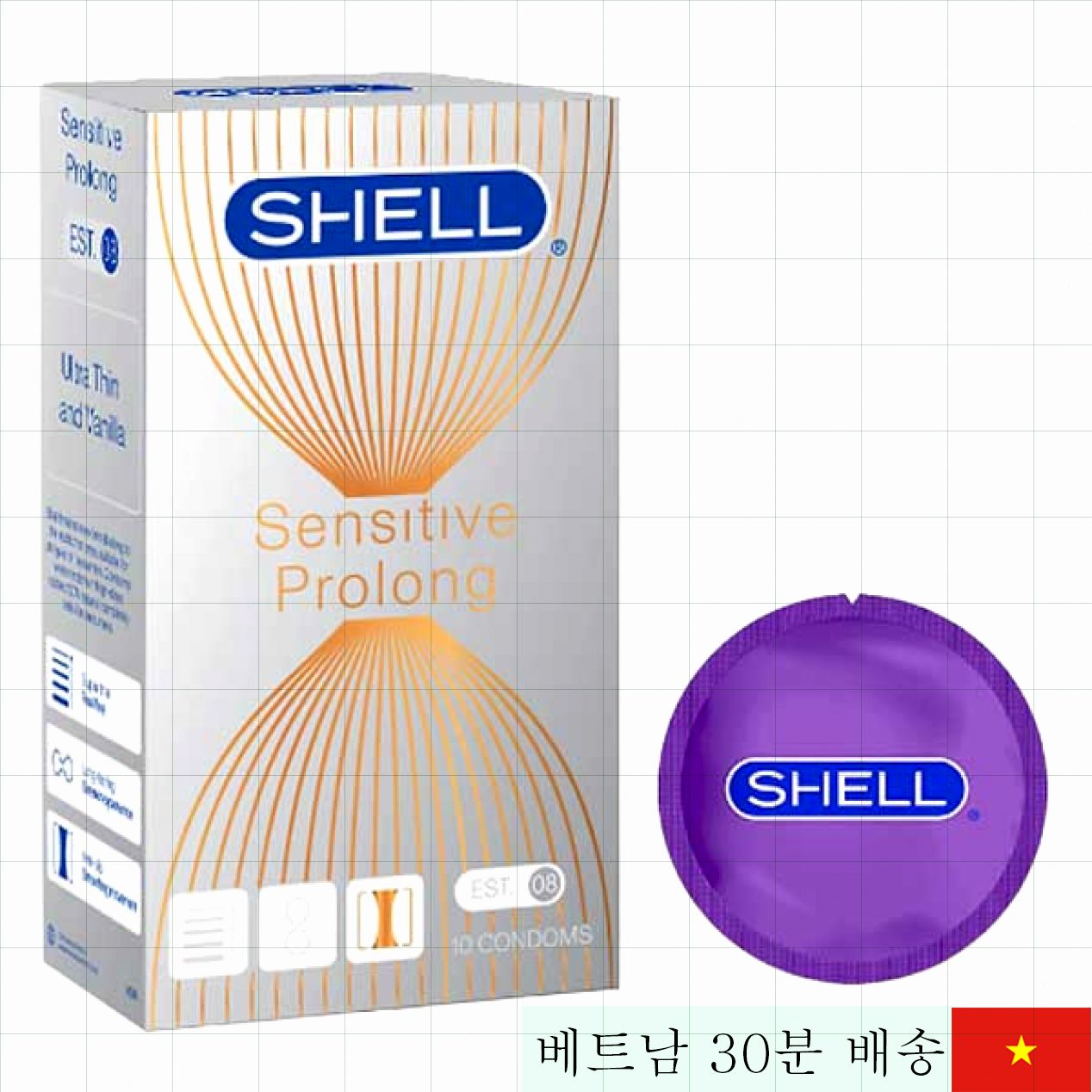 Shell Sensitive Prolong 콘돔으로 한층 더 깊고 강렬한 사랑의 순간을 만끽하세요. 자연 그대로의 촉감과 탁월한 연장 효과가 여러분의 만족을 책임집니다.
