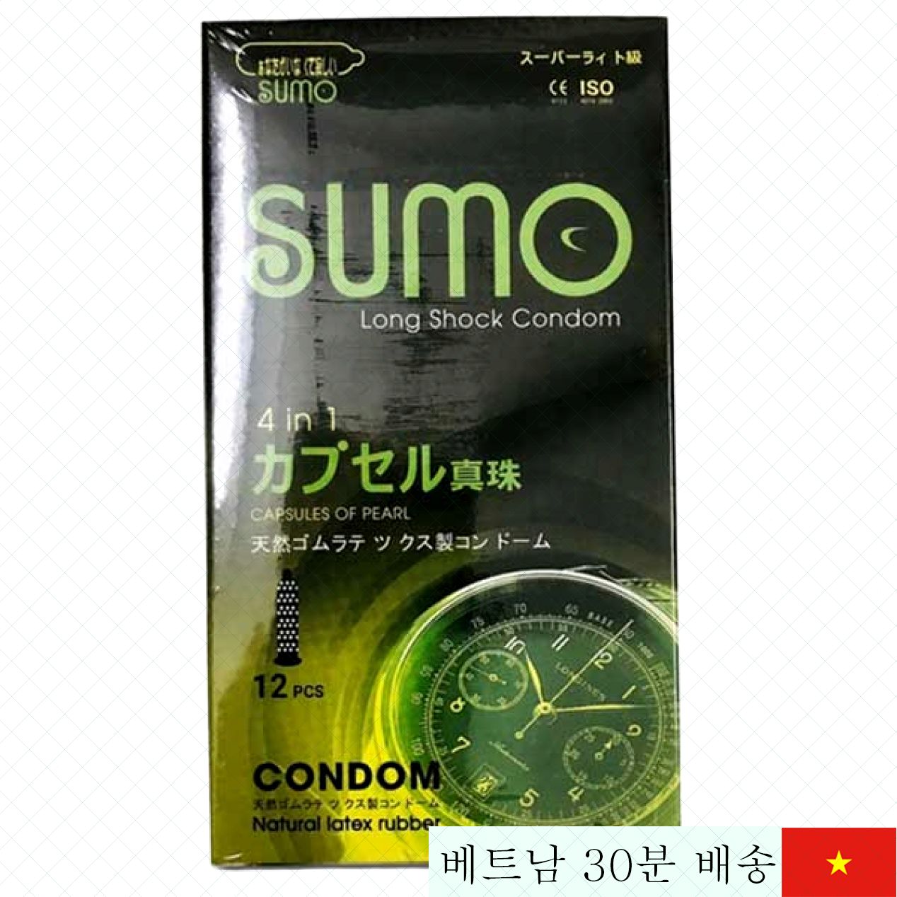 일본에서 직수입된 SUMO 4in1 콘돔은 Daitotsusho Co. Ltd에서 직접 설계 및 제조한 프리미엄 제품입니다. 100% 천연 고무로 만들어져 피부에 안전하며 매우 뛰어난 탄력성을 자랑합니다. 52mm의 너비와 180mm의 길이로 남성의 몸에 밀착되어 편안한 착용감을 제공합니다.